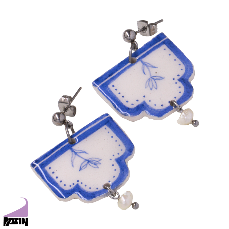 گوشواره سرامیکی قاب آبی سفید Ceramic earrings with design of blue and white frame